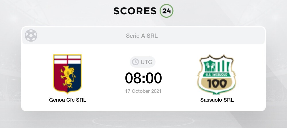 Football Soccer Match Genoa vs Sassuolo Result and Live Scores Details. Recent outings average 313 goals while both teams score 56 of the time. Genoa vs Sassuolo Italy - Serie A Sun 17 Oct 2021. Genoa vs Sassuolo odds.
